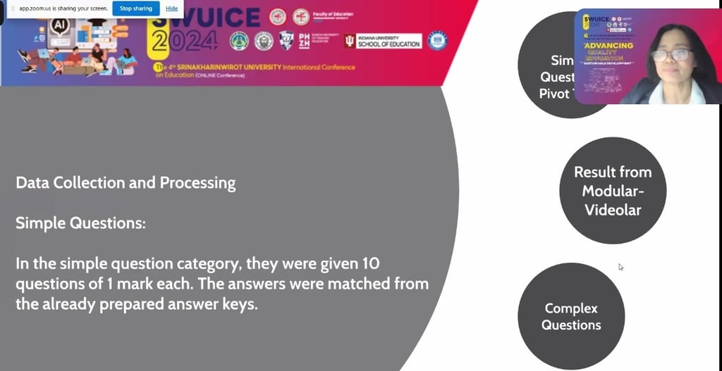 She has presented her research paper on the effectiveness of modular and videolar instruction in teaching mathematics during the international conference 2024, organized by Srinakarinwirot University, Bangkok.